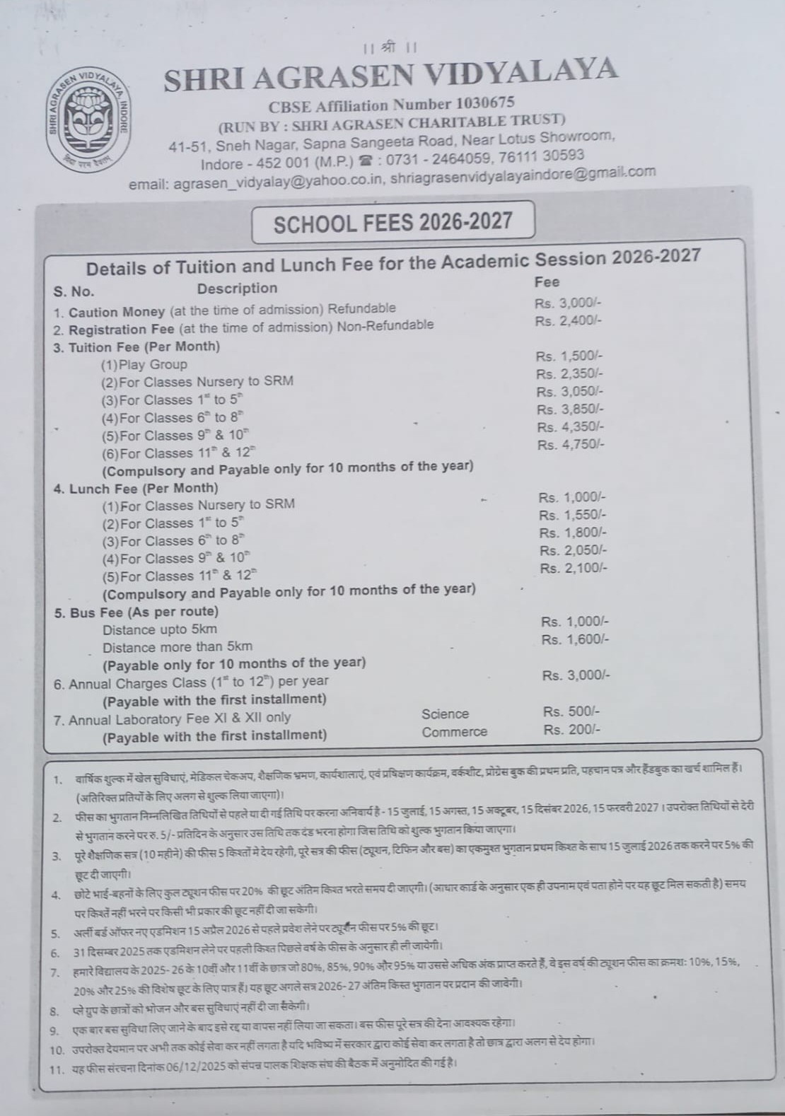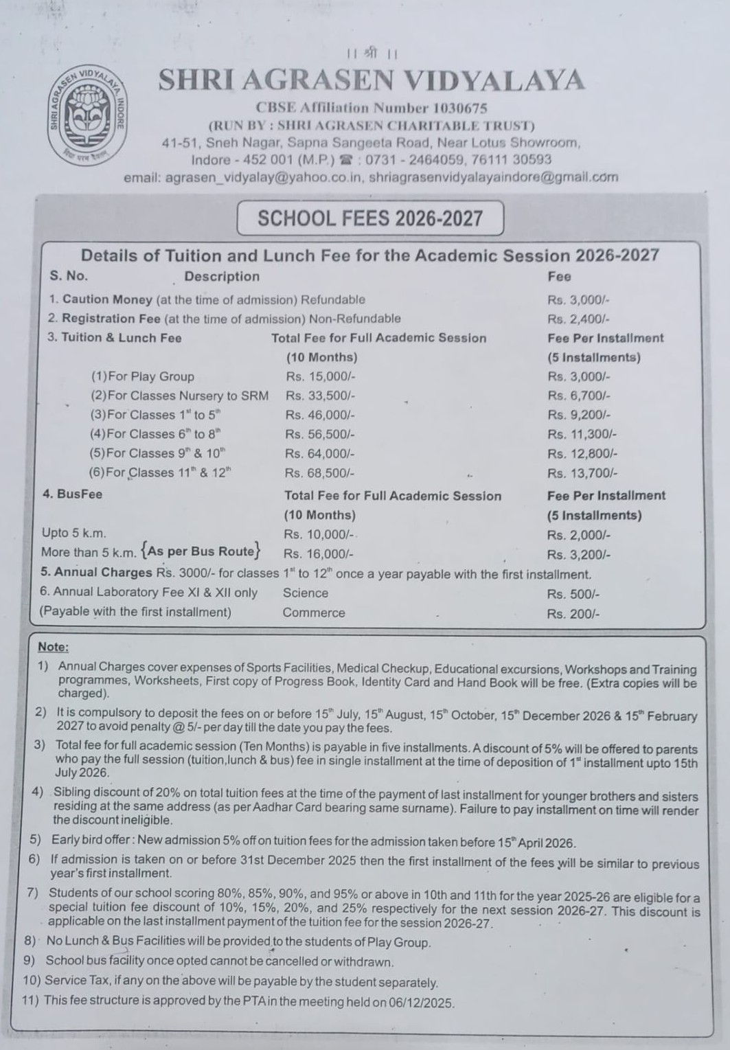 SCHOOL FEES 2026-2027